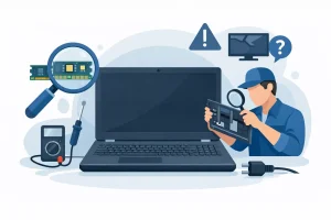 Outro cenário comum é quando o notebook liga e desliga em seguida, ou reinicia em looping sem mostrar nada na tela. Nesse caso, a falha pode estar ligada ao processo de POST, que é a checagem inicial do hardware. Se memória, BIOS ou chipset não respondem como deveriam, o vídeo simplesmente não sobe.